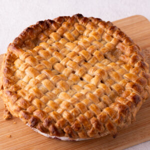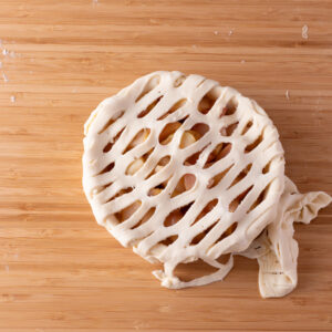 パイの上部を格子状に編んで仕上げる編み方の総称。こちらはすき間なく格子状に編んでいくスタイル。