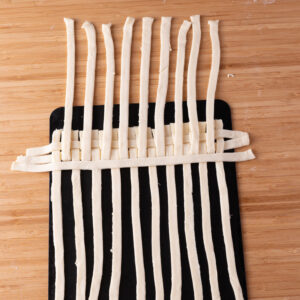 ②①の生地19本を縦に並べ、偶数番号の生地を上に折り返し、そこに横方向に生地をおく。