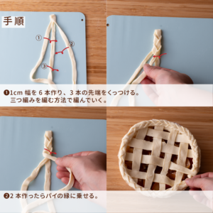 可愛らしく編んだ三つ編み生地がアップルパイを少し華やかにしてくれます。