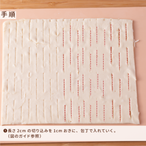 メッシュローラーを使用すると均一な模様ができます。今回は包丁のみで出来るやり方を紹介します。