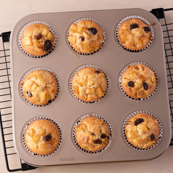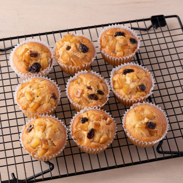 バター不使用の生地にアーモンドパウダーを加え、レーズン入りのマフィンとしても楽しめます。