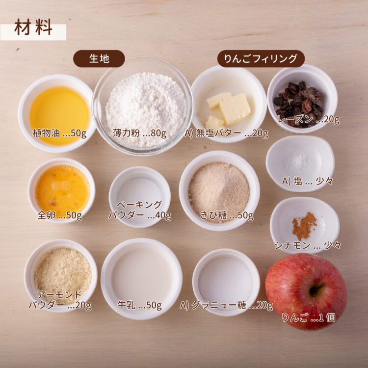 りんごをバターと砂糖でじっくり煮て、レーズンとシナモンで風味豊かに仕上げたフィリングを、しっとり生地に焼き込んだオイルケーキです。アーモンドのコクがふんわり広がり、冷めても美味しい素朴な味わいが楽しめます。
