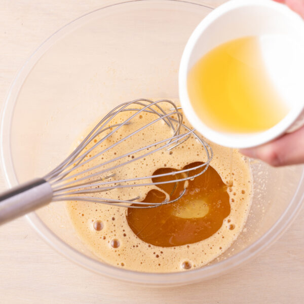 ③植物油を少しずつ加えて乳化するように混ぜる。
