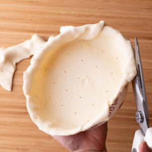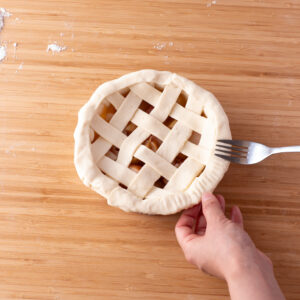 ⑥余分なきじはハサミで切り落とす。縁にも一周させてフォークの背で押して模様をつける。