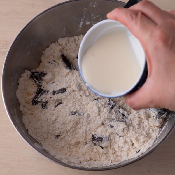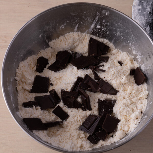 ③手で割ったチョコレートを加えてざっくりと混ぜる。