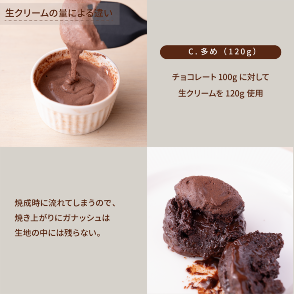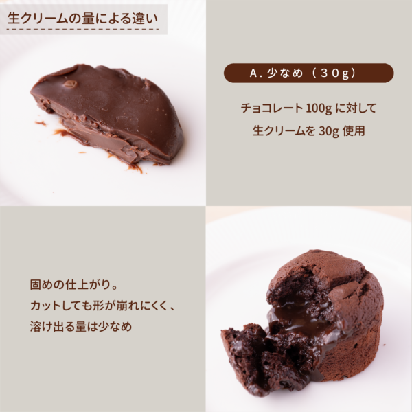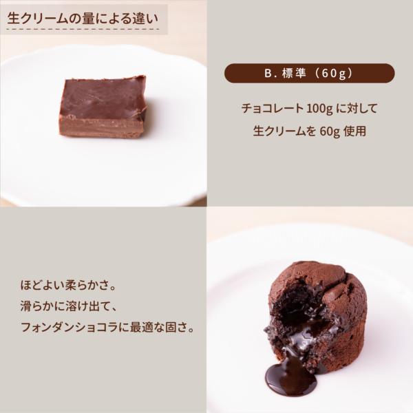 生クリームの量や温度、チョコレートの種類を少し変えるだけで、口どけや質感が大きく変わります!
