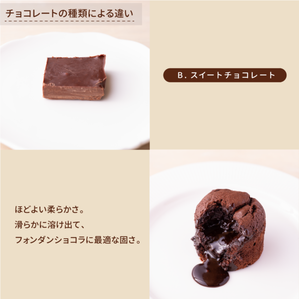 ✔ チョコレートの種類(スイート/ミルク/ビター)