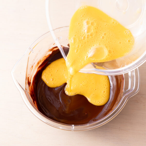 ①耐熱容器にビターチョコレートと無塩バターを入れ、湯煎で溶かしなめらかになるまで混ぜる。