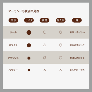 アーモンドは形状によって味・食感・見た目・使い方がまったく違うのをご存じですか?