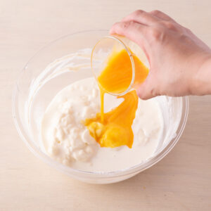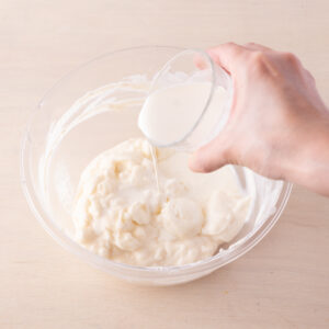 ・別のボウルにクリームチーズとグラニュー糖、ヨーグルトを入れる