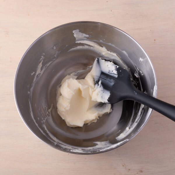 ③(チーズクリームを作る)マスカルポーネとグラニュー糖を混ぜ合わせ、絞り袋に入れる。