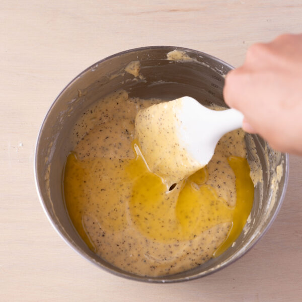 ④ふるっておいた粉類とアールグレイを加えてゴムベラで切るようにして混ぜる