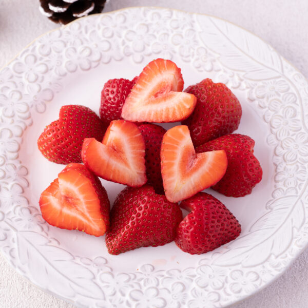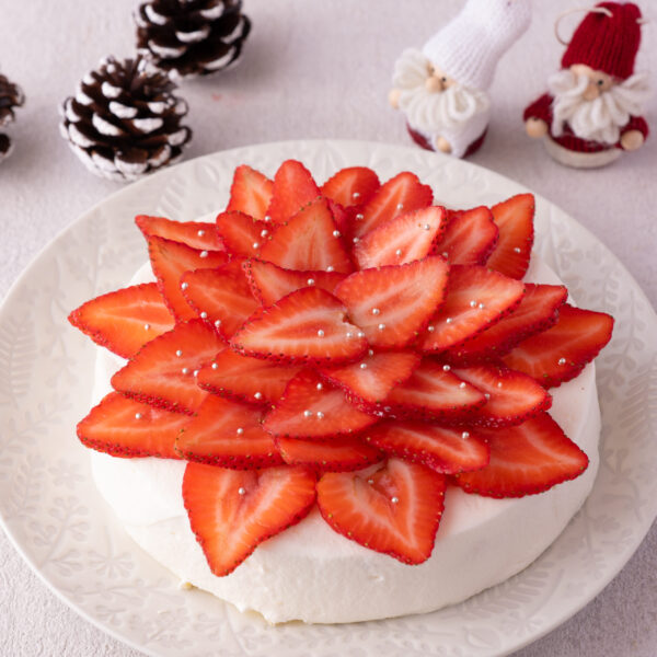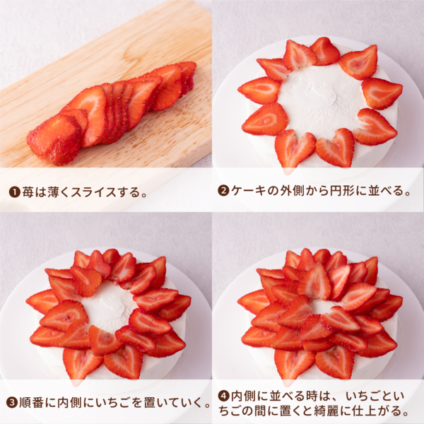 うすくカットしたいちごを放射線状に並べると華やかに。