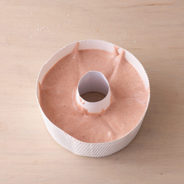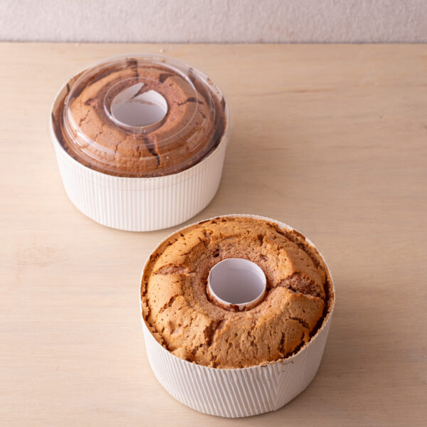 淡いピンク色に焼き上がった生地から、いちご練乳の香りがふわっと広がる春色シフォンケーキ。