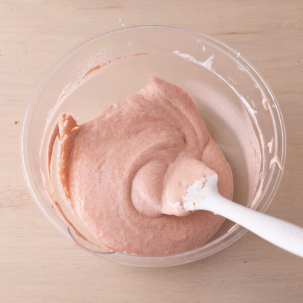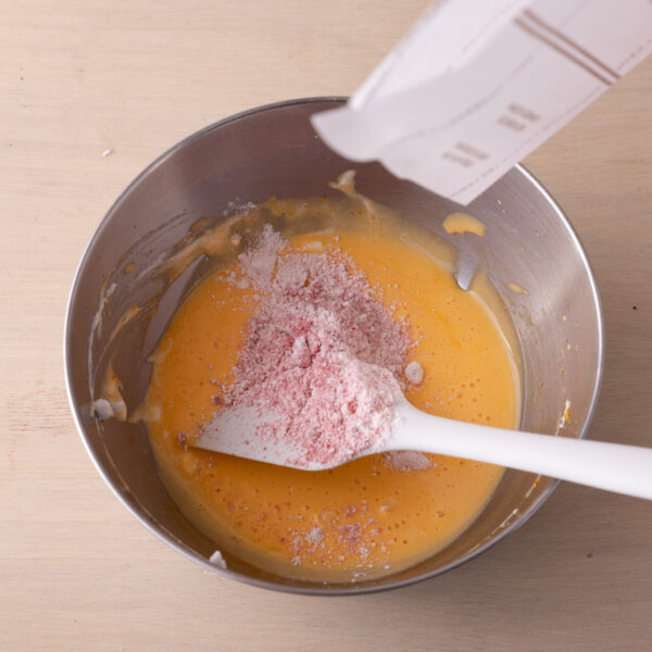 ・薄力粉とストロベリーパウダーは合わせてふるっておく。
