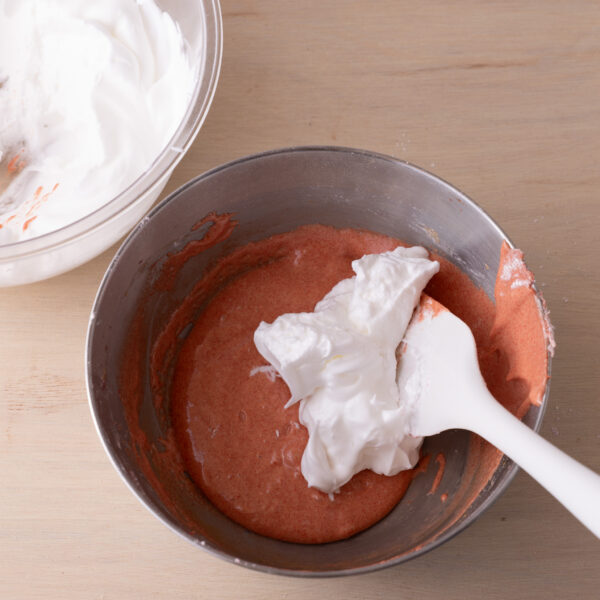 ⑤残りのメレンゲを加えて、ゴムベラで切るようにして艶が出るまで混ぜる。